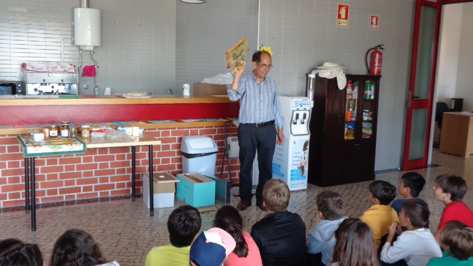 O Senhor Vicente Marcelo trouxe abelhas para os nossos meninos observarem: uma abelha rainha e as operárias; mostrou o mel, a colmeia, e outros objectos relacionados com a sua actividade.